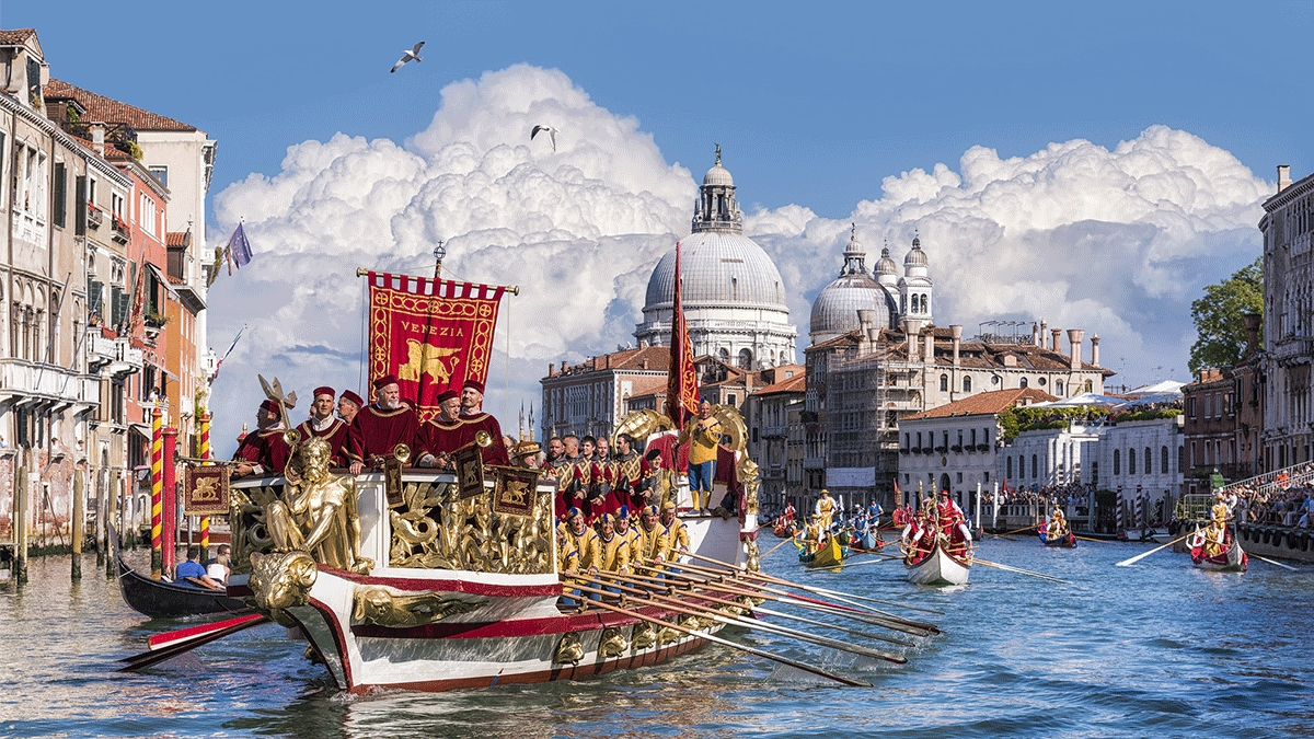 Die Veranstaltung wird mit einer lebhaften Wasserparade typischer Boote aus dem 16. Jahrhundert und kostümierter Gondoliere eröffnet und bietet ein Spektakel, das an die glorreiche Vergangenheit Venedigs erinnert.
