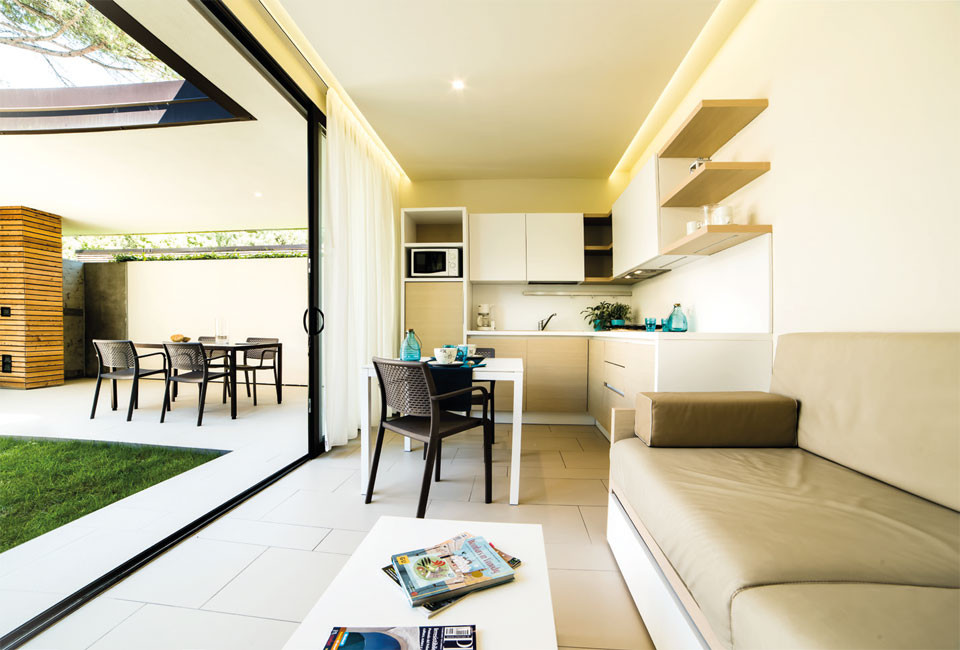 Garden Villa è un'interpretazione contemporanea del bungalow, dove i pini determinano il layout dell'"architettura botanica", l'unità con giardino privato si integra e si fonde perfettamente con la natura circostante